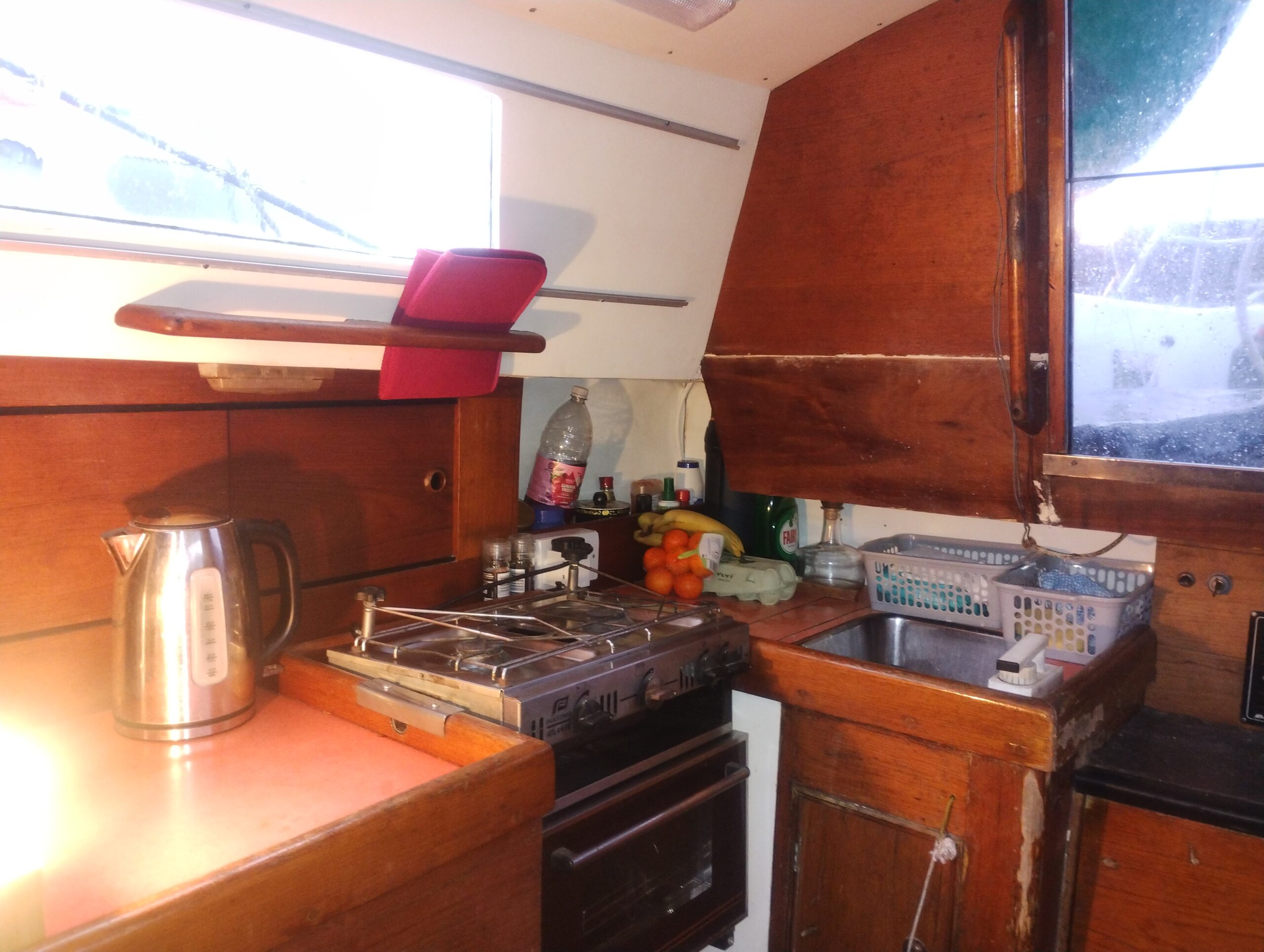 Laid up at home address in cradle. Part internal restoration before ill-health prevented further work. Hull and deck in fair condition. New mast kit included together with hydrovane self steering. Needs completion of refit to suit new owner and new engine and gearbox unless wish to recondition the existing Watermota and ‘J’ type gearbox.